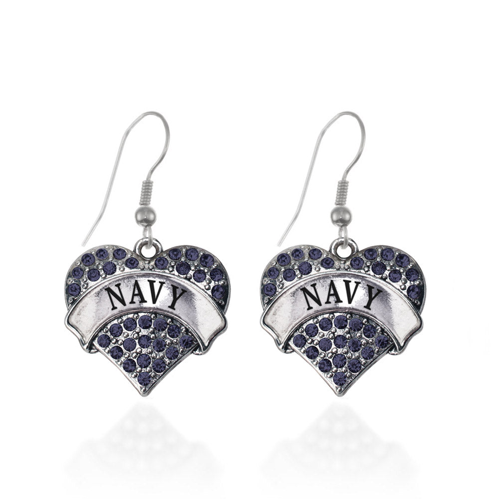 Our sparkling dangle earrings, equipped with a stylish french hook backing and the Navy blue pave heart charm, is crafted from white metal with a silver plated finish and accented with cubic zirconia stones.