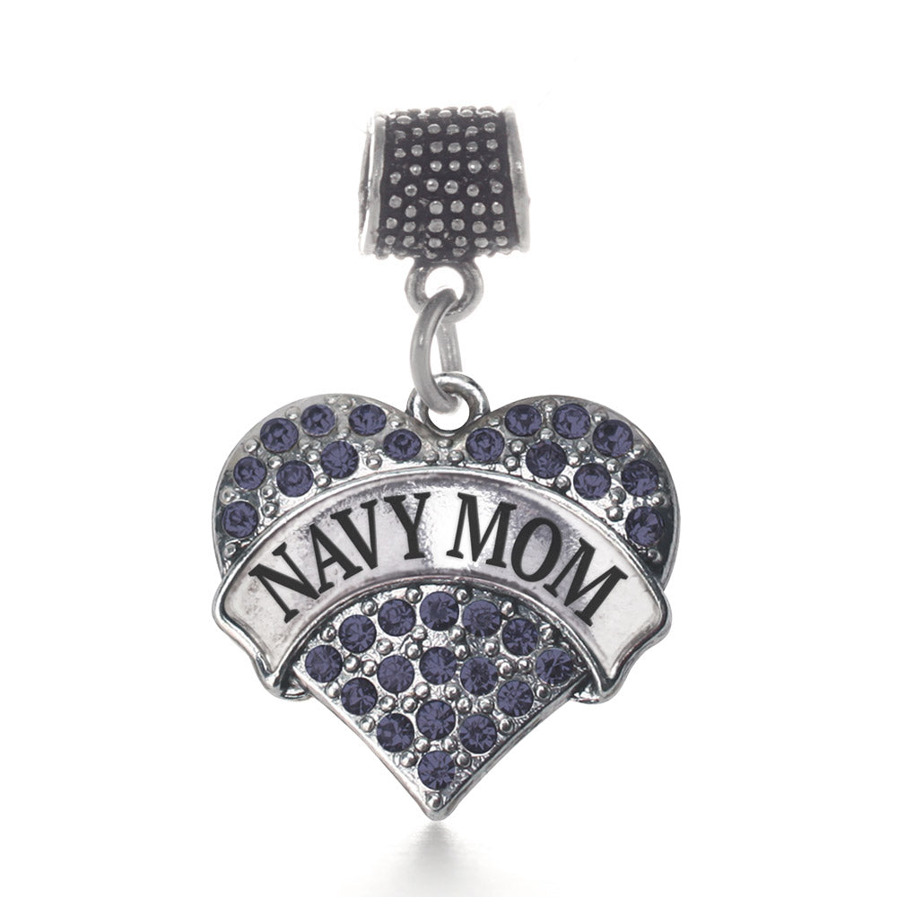 Our sparkling memory charm, equipped with a stylish charm attachment ring and the Navy Mom blue pave heart charm, is crafted from white metal with a silver plated finish and accented with cubic zirconia stones.