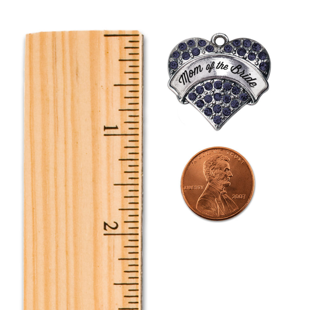 Silver Navy Mom of the Bride Blue Pave Heart Charm Classic Necklace