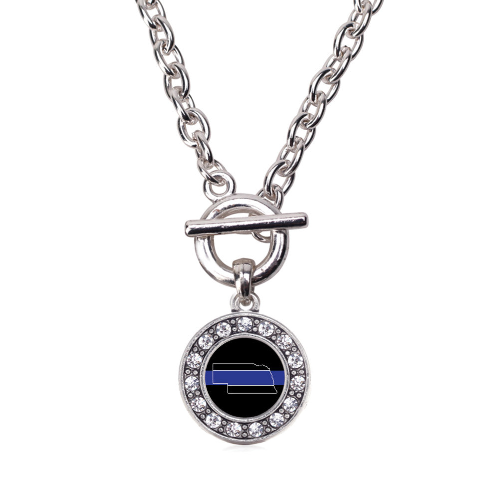 Silver Nebraska Thin Blue Line Circle Charm Toggle Necklace