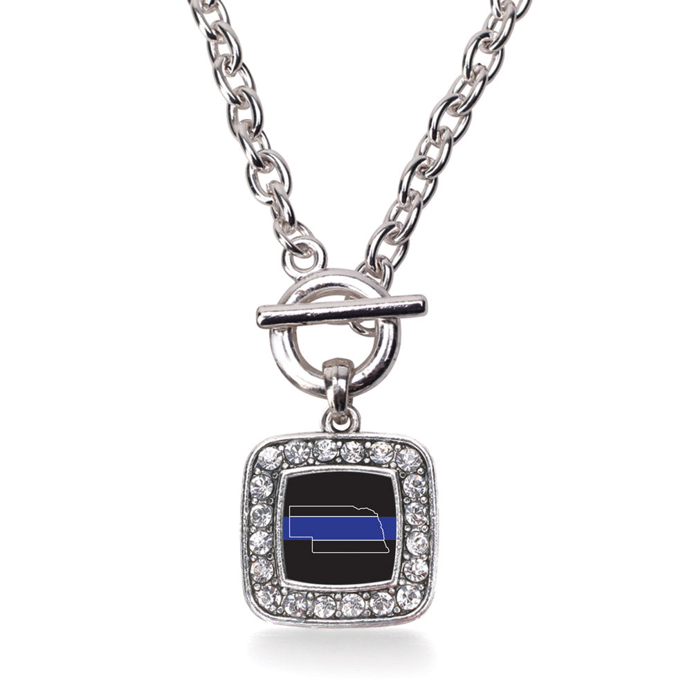 Silver Nebraska Thin Blue Line Square Charm Toggle Necklace
