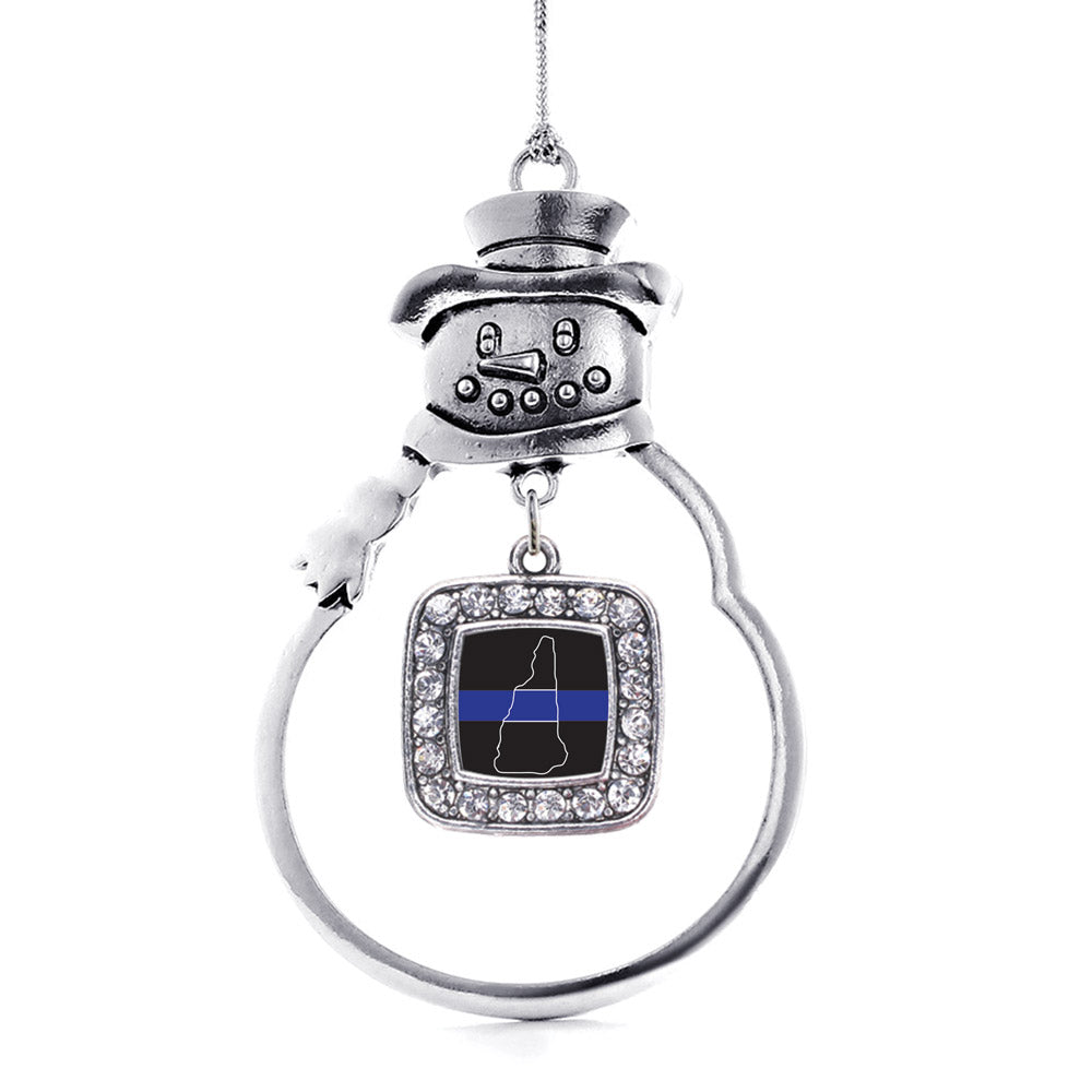Silver New Hampshire Thin Blue Line Square Charm Snowman Ornament