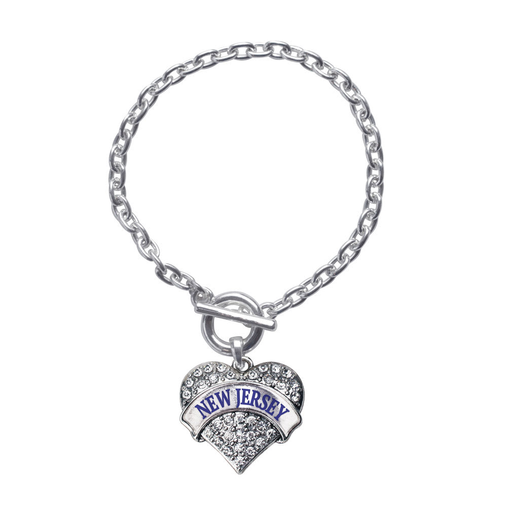 Silver New Jersey Pave Heart Charm Toggle Bracelet