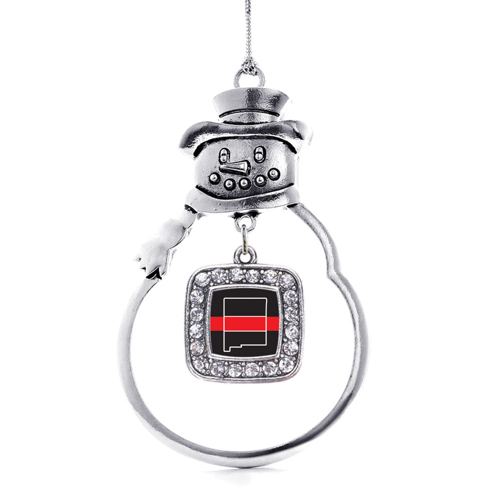 Silver New Mexico Thin Red Line Square Charm Snowman Ornament