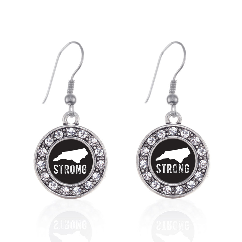 Silver North Carolina Strong Circle Charm Dangle Earrings