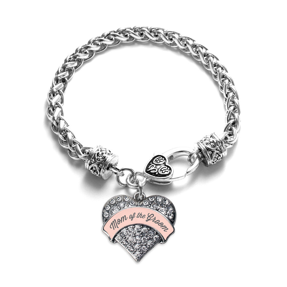 Our sparkling braided bracelet, equipped with a stylish lobster claw clasp and the Nude Mom of Groom pave heart charm, is crafted from white metal with a silver plated finish and accented with cubic zirconia stones.