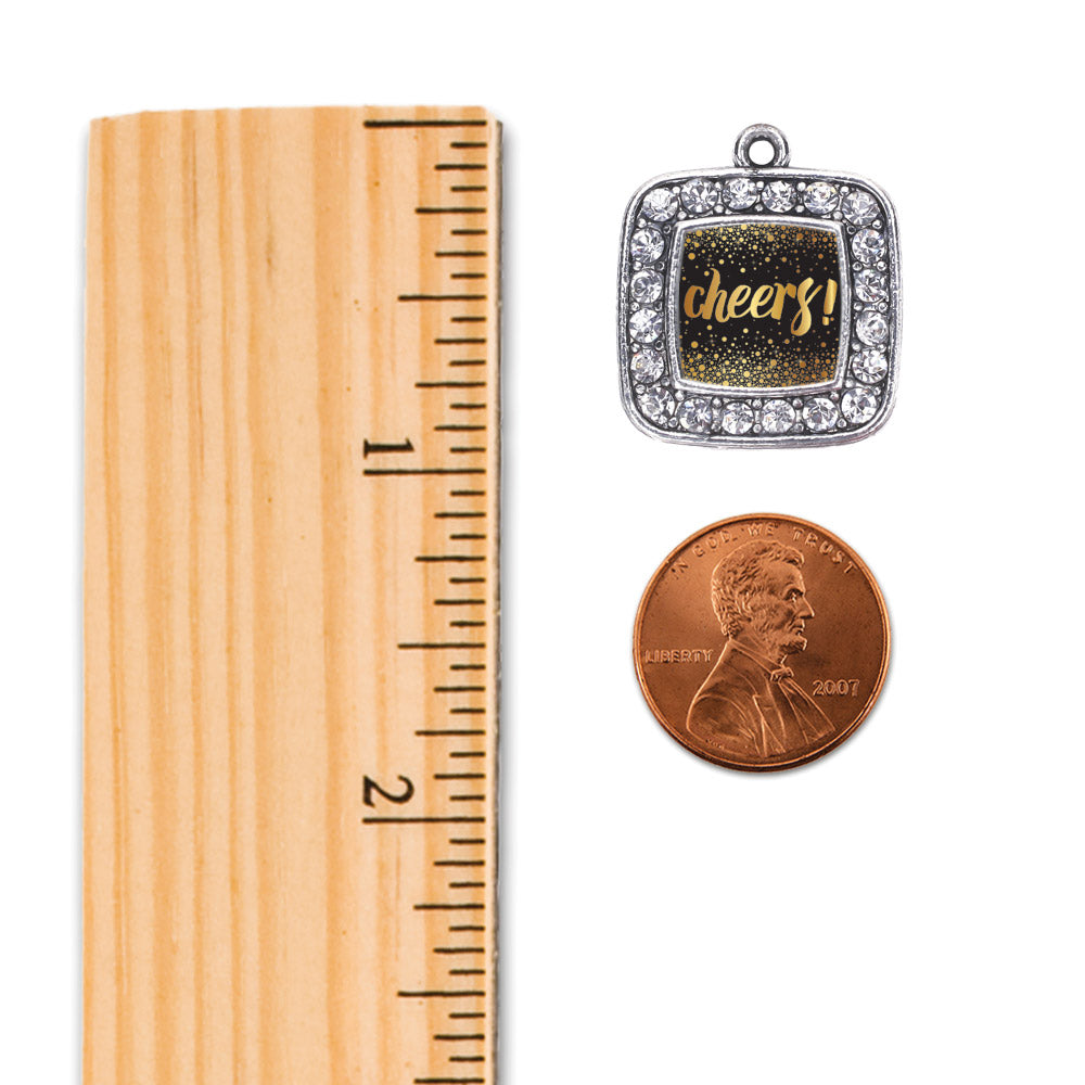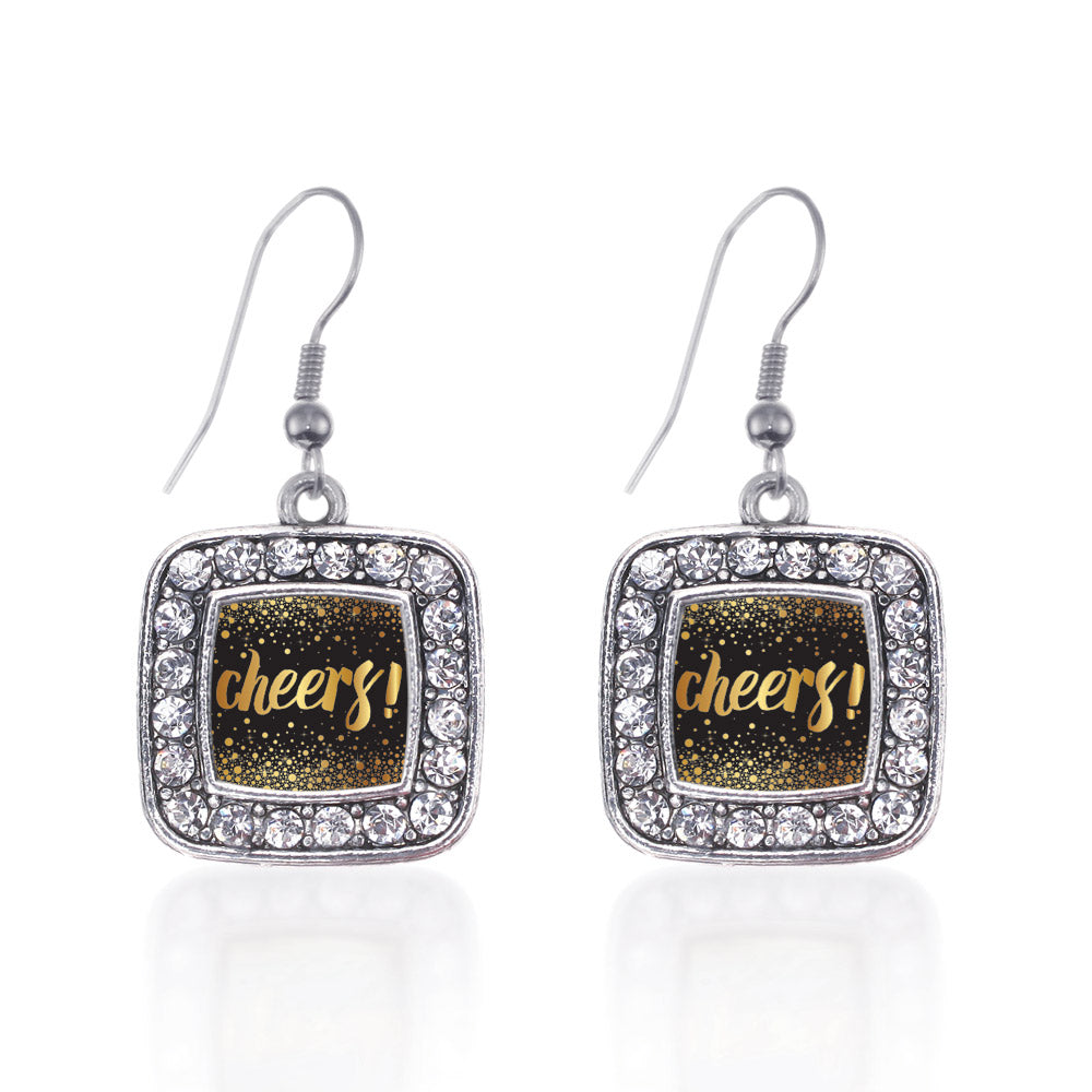 Our sparkling dangle earrings, equipped with a stylish french hook backing and the NYE Cheers square charm, is crafted from white metal with a silver plated finish and accented with cubic zirconia stones.