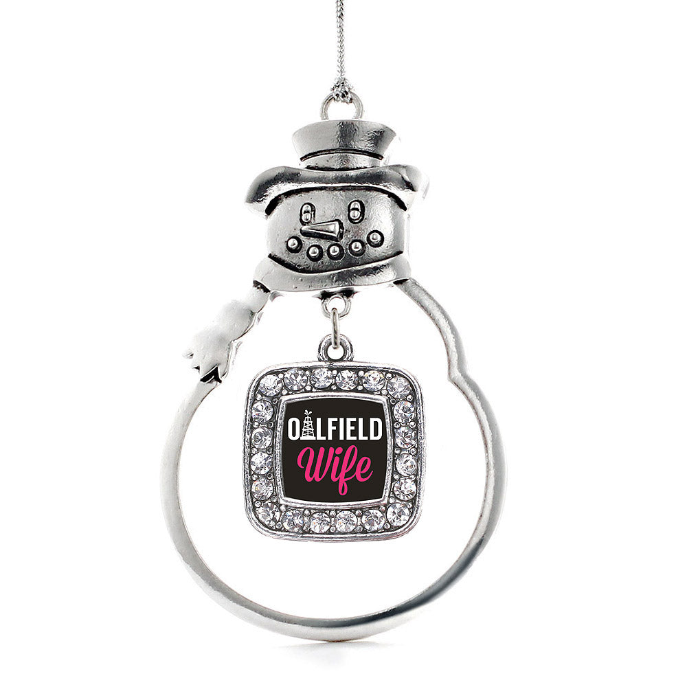 Silver Oilfield Wife Square Charm Snowman Ornament