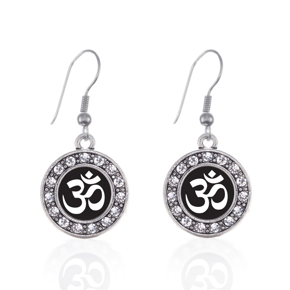 Our sparkling dangle earrings, equipped with a stylish french hook backing and the OM - Black and White circle charm, is crafted from white metal with a silver plated finish and accented with cubic zirconia stones.