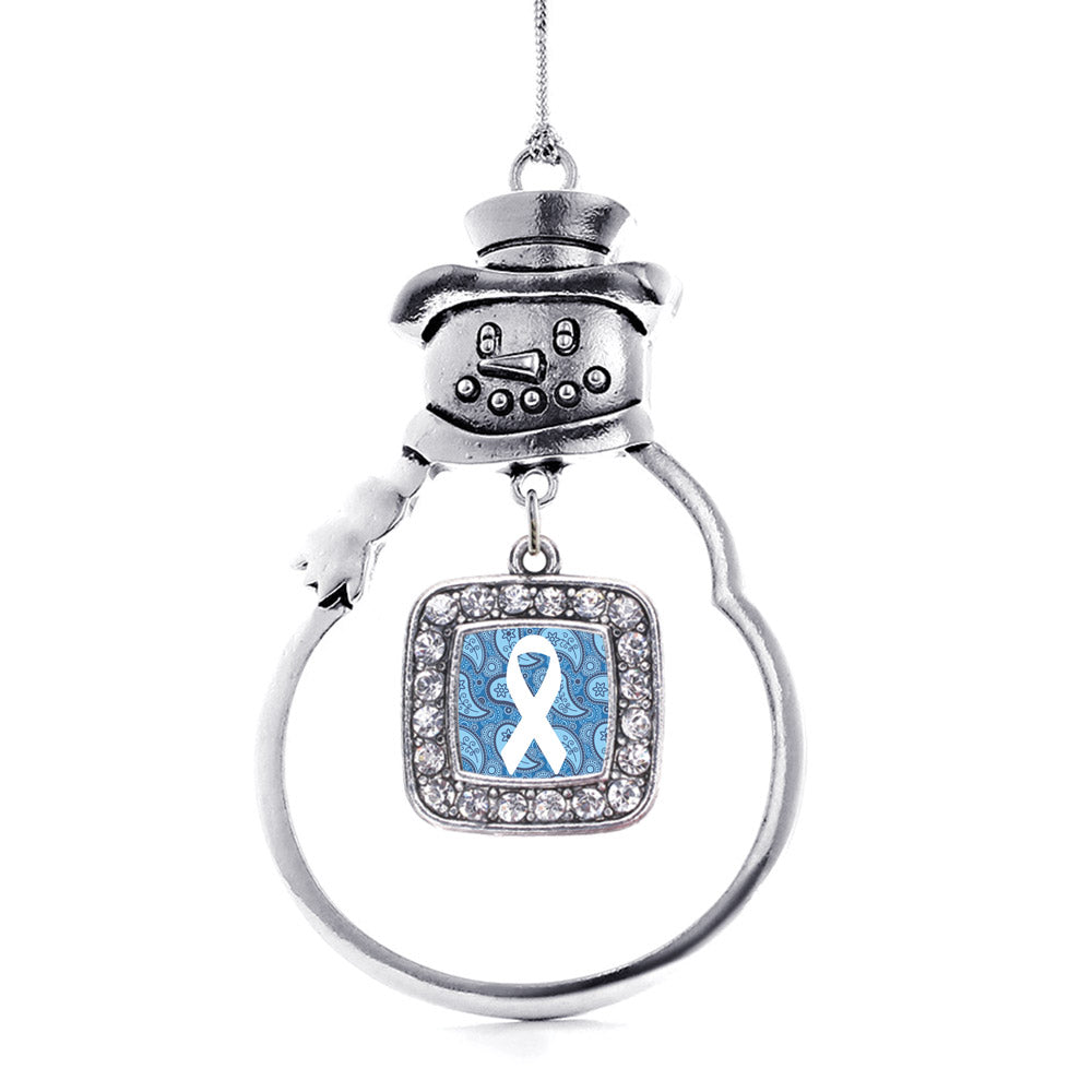 Silver Paisly Awareness Ribbon Square Charm Snowman Ornament