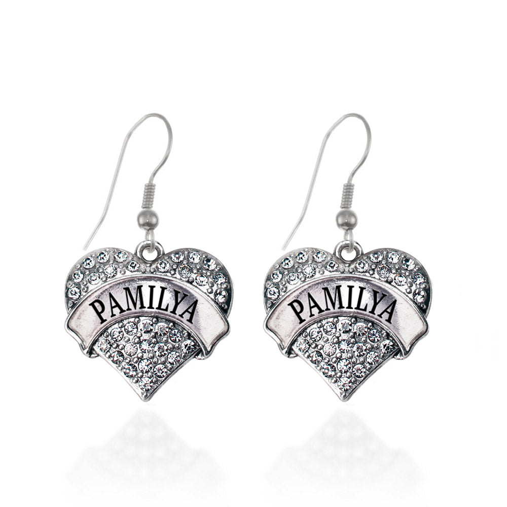 Silver Pamilya (Filipino) Pave Heart Charm Dangle Earrings