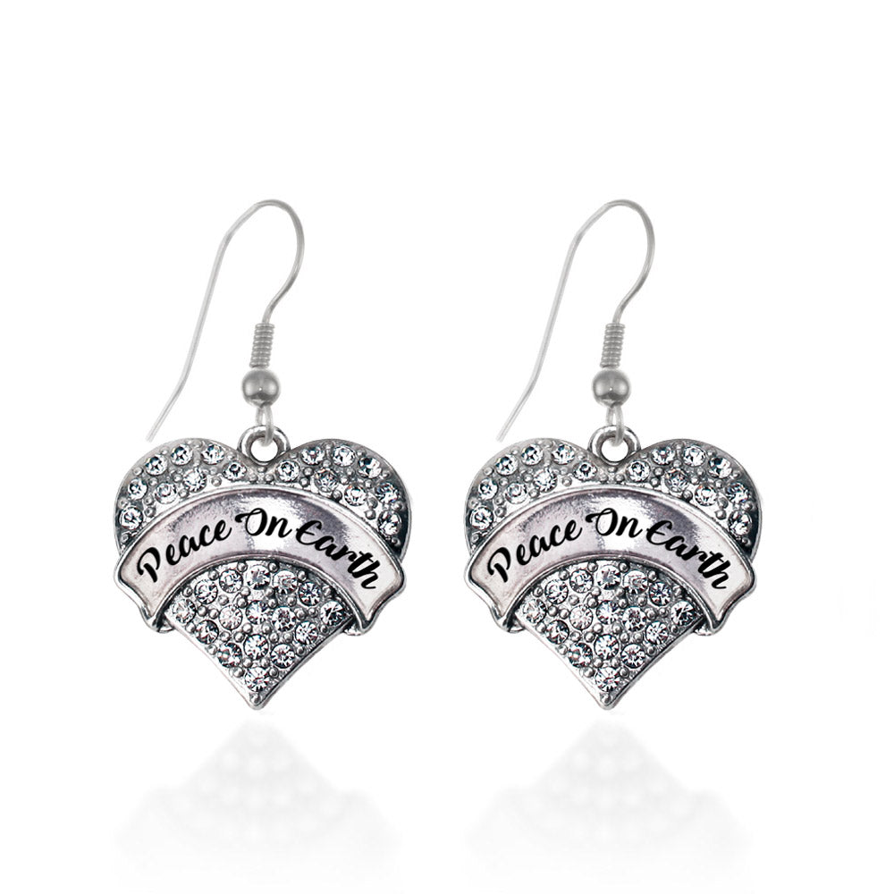 Silver Peace On Earth Pave Heart Charm Dangle Earrings