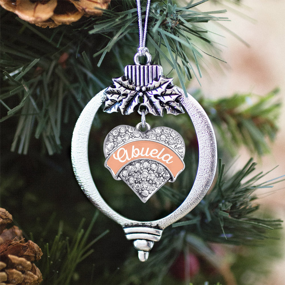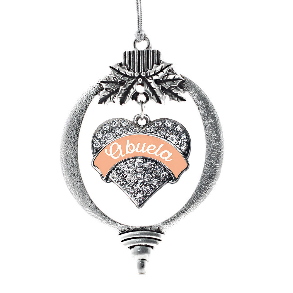 Silver Peach Abuela Pave Heart Charm Holiday Ornament
