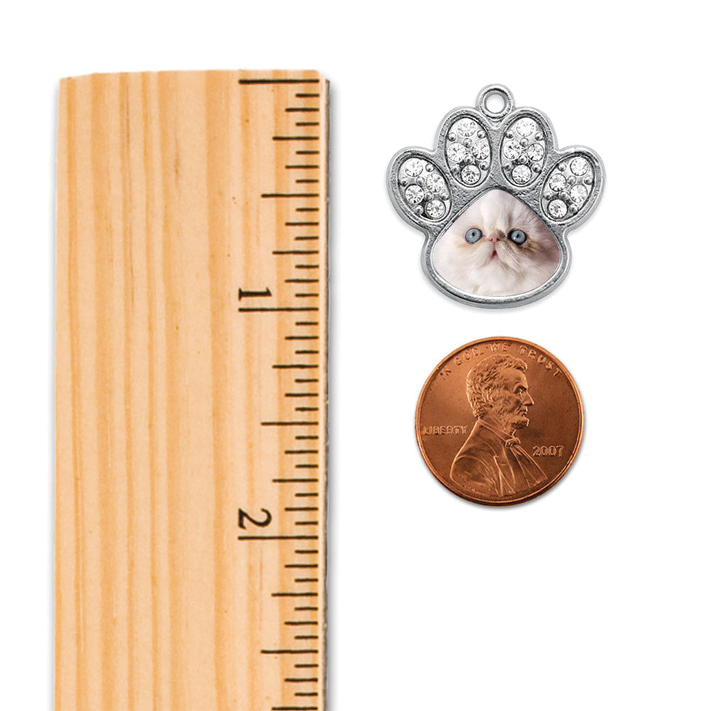 Silver Persian Cat Pave Paw Charm Holiday Ornament