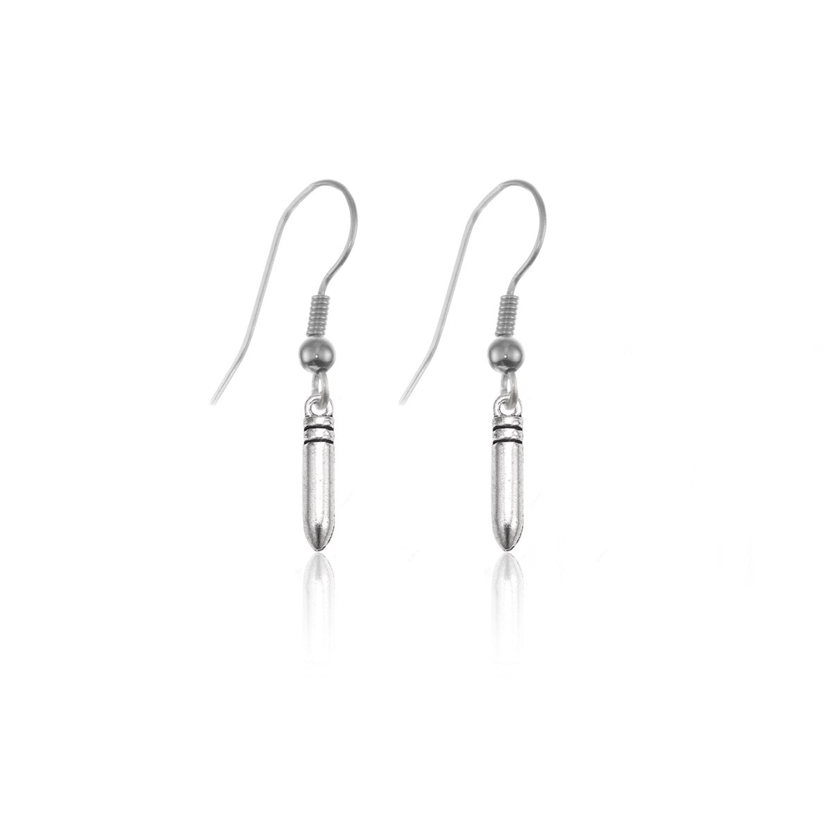 Our sparkling dangle earrings, equipped with a stylish french hook backing and the Petite Bullet charm, is crafted from white metal with a silver plated finish.