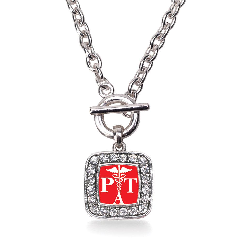 Silver Physical Therapist Assistant Square Charm Toggle Necklace
