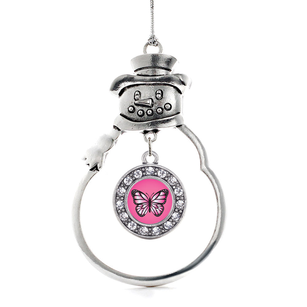 Silver Pink Butterfly Circle Charm Snowman Ornament