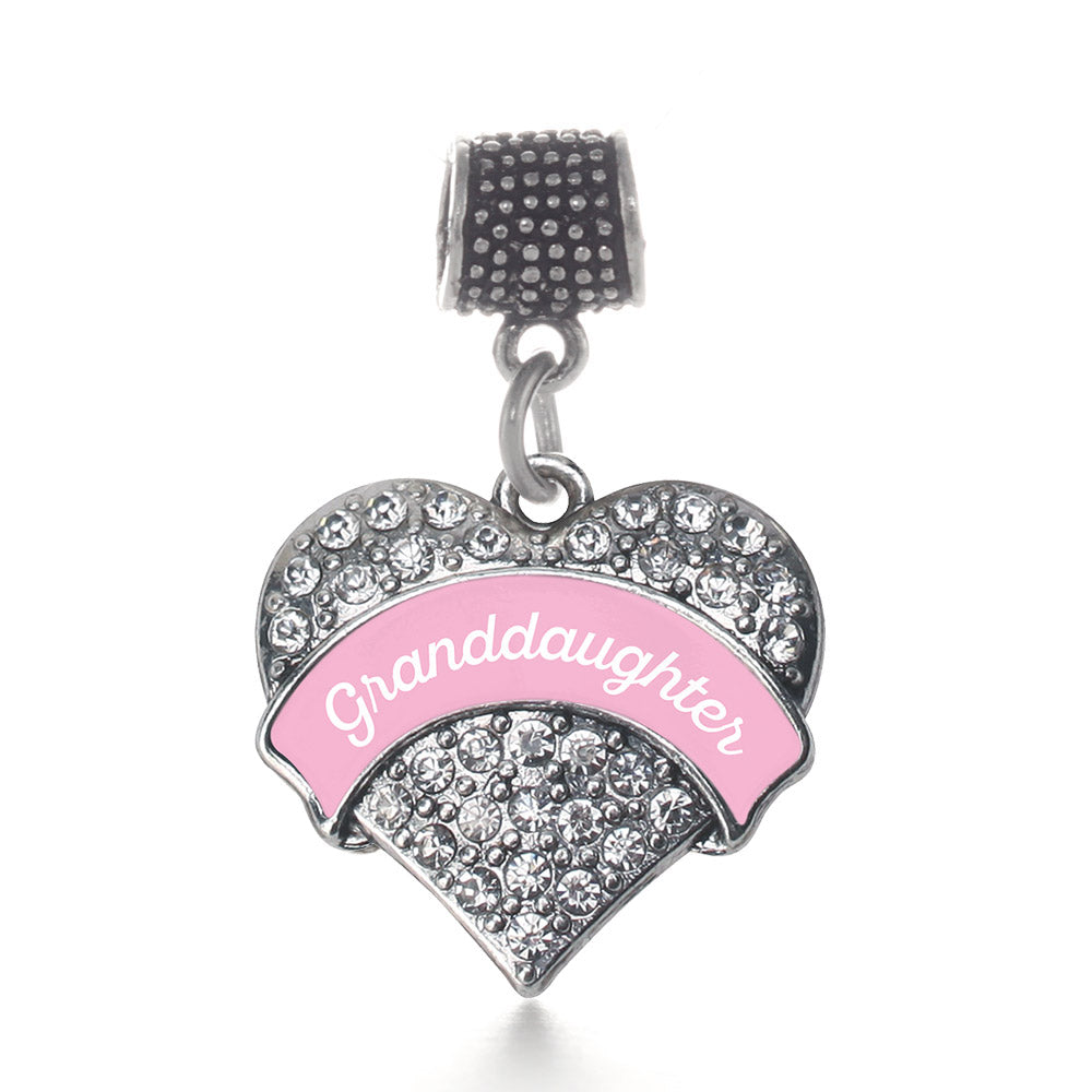 Our sparkling memory charm, equipped with a stylish charm attachment ring and the Pink Granddaughter pave heart charm, is crafted from white metal with a silver plated finish and accented with cubic zirconia stones.