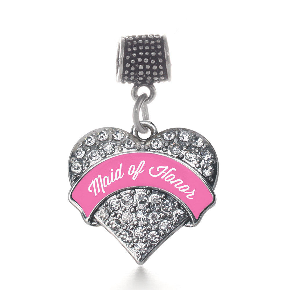 Silver Pink Maid of Honor Pave Heart Memory Charm