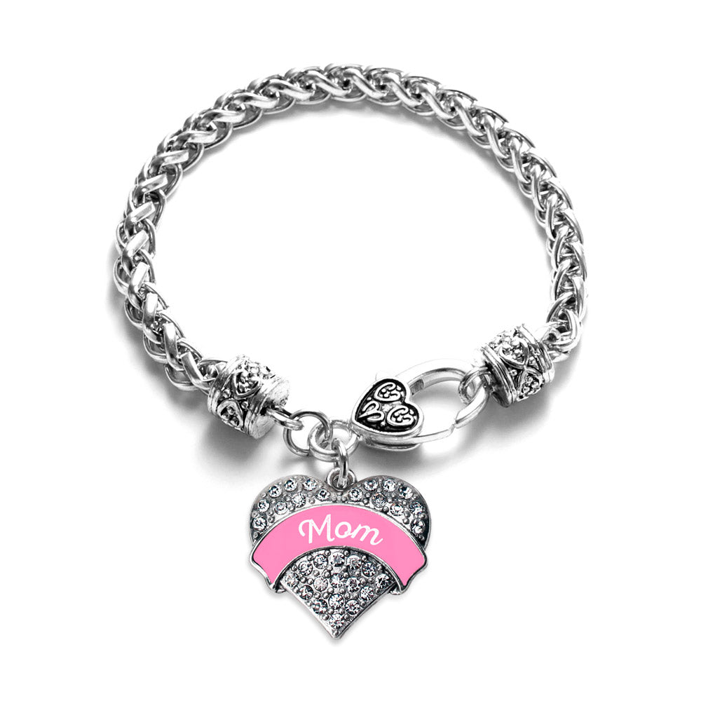 Our sparkling braided bracelet, equipped with a stylish lobster claw clasp and the Pink Mom pave heart charm, is crafted from white metal with a silver plated finish and accented with cubic zirconia stones.