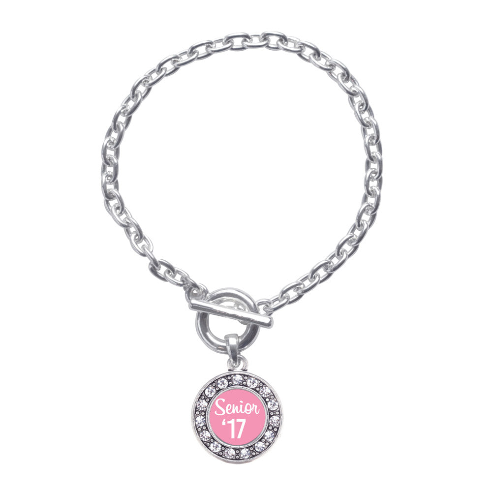 Silver Pink Senior '17 Circle Charm Toggle Bracelet
