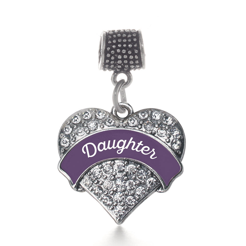 Silver Plum Daughter Pave Heart Memory Charm