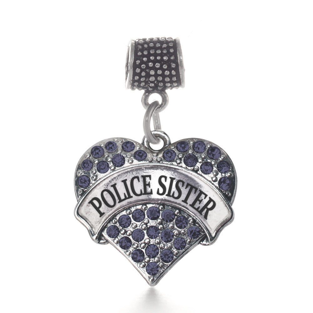Silver Police Sister Blue Pave Heart Memory Charm