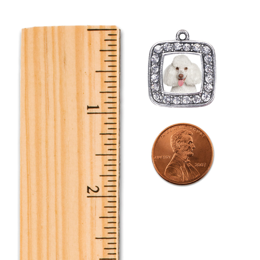 Silver Poodle Face Square Charm Holiday Ornament
