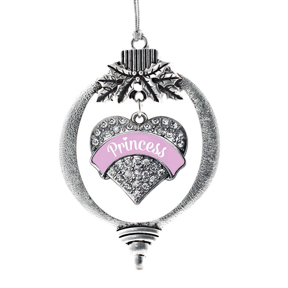Our sparkling holiday ornament, equipped with a stylish silver rope and the Princess - Lavender pave heart charm, is crafted from white metal with a silver plated finish and accented with cubic zirconia stones.