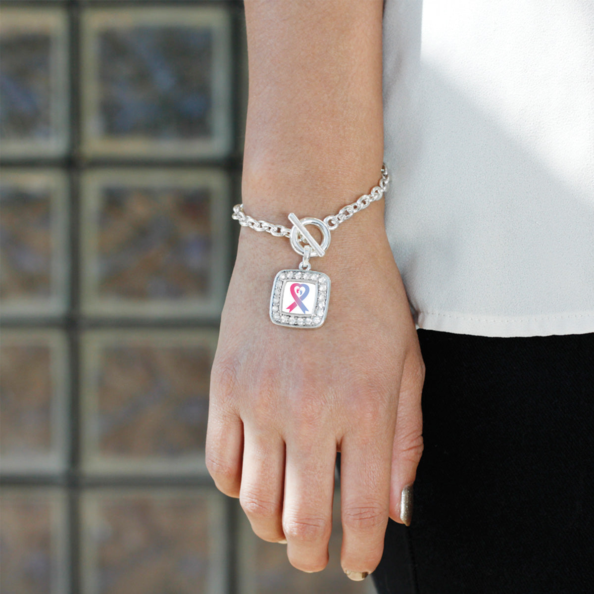 Silver Pro-Life Ribbon Square Charm Toggle Bracelet