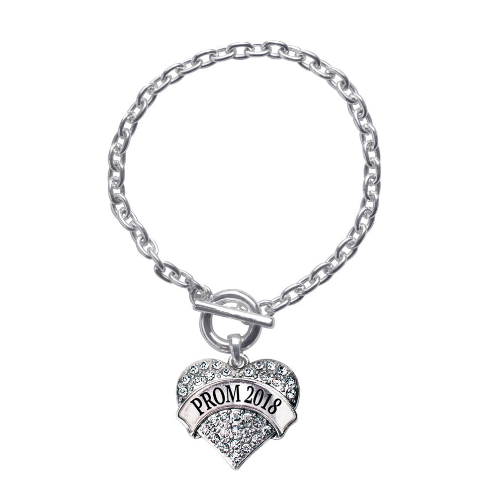 Silver Prom 2018 Pave Heart Charm Toggle Bracelet