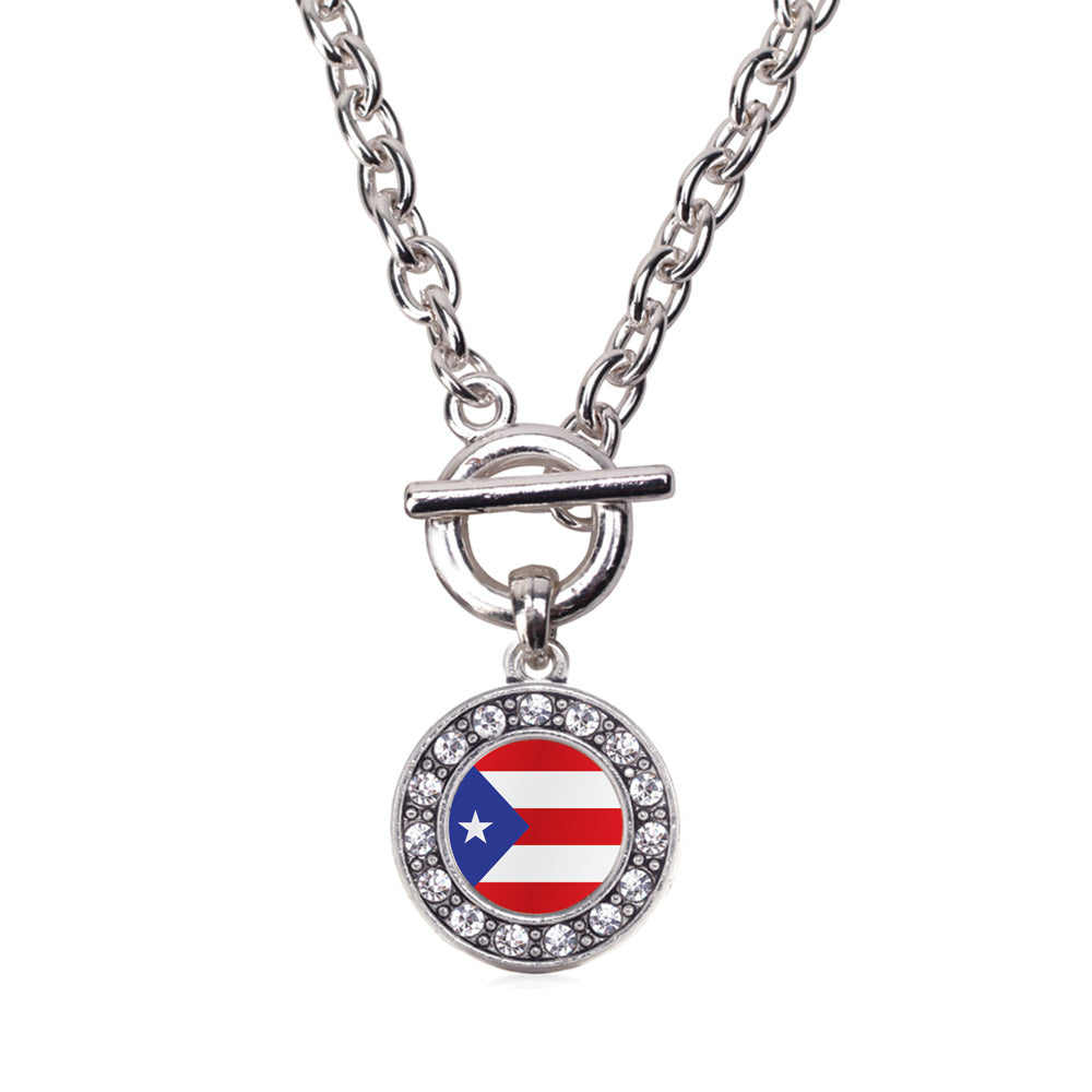Silver Puerto Rico Flag Circle Charm Toggle Necklace