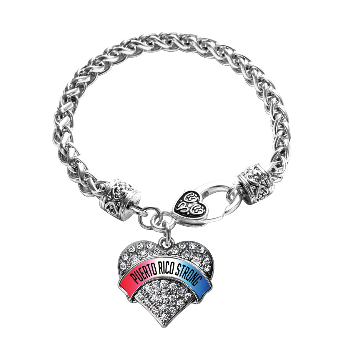 Our sparkling braided bracelet, equipped with a stylish lobster claw clasp and the Puerto Rico Strong pave heart charm, is crafted from white metal with a silver plated finish and accented with cubic zirconia stones.