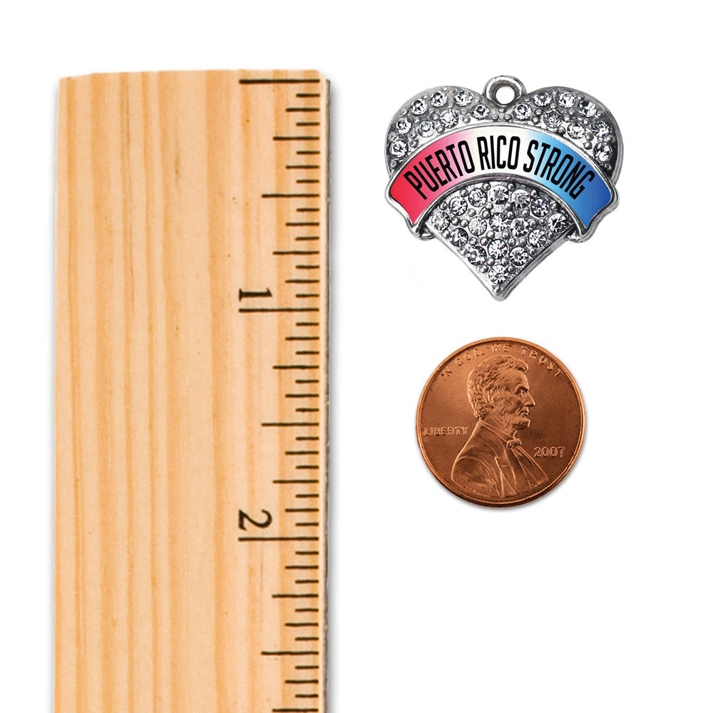 Silver Puerto Rico Strong Pave Heart Charm Braided Bracelet