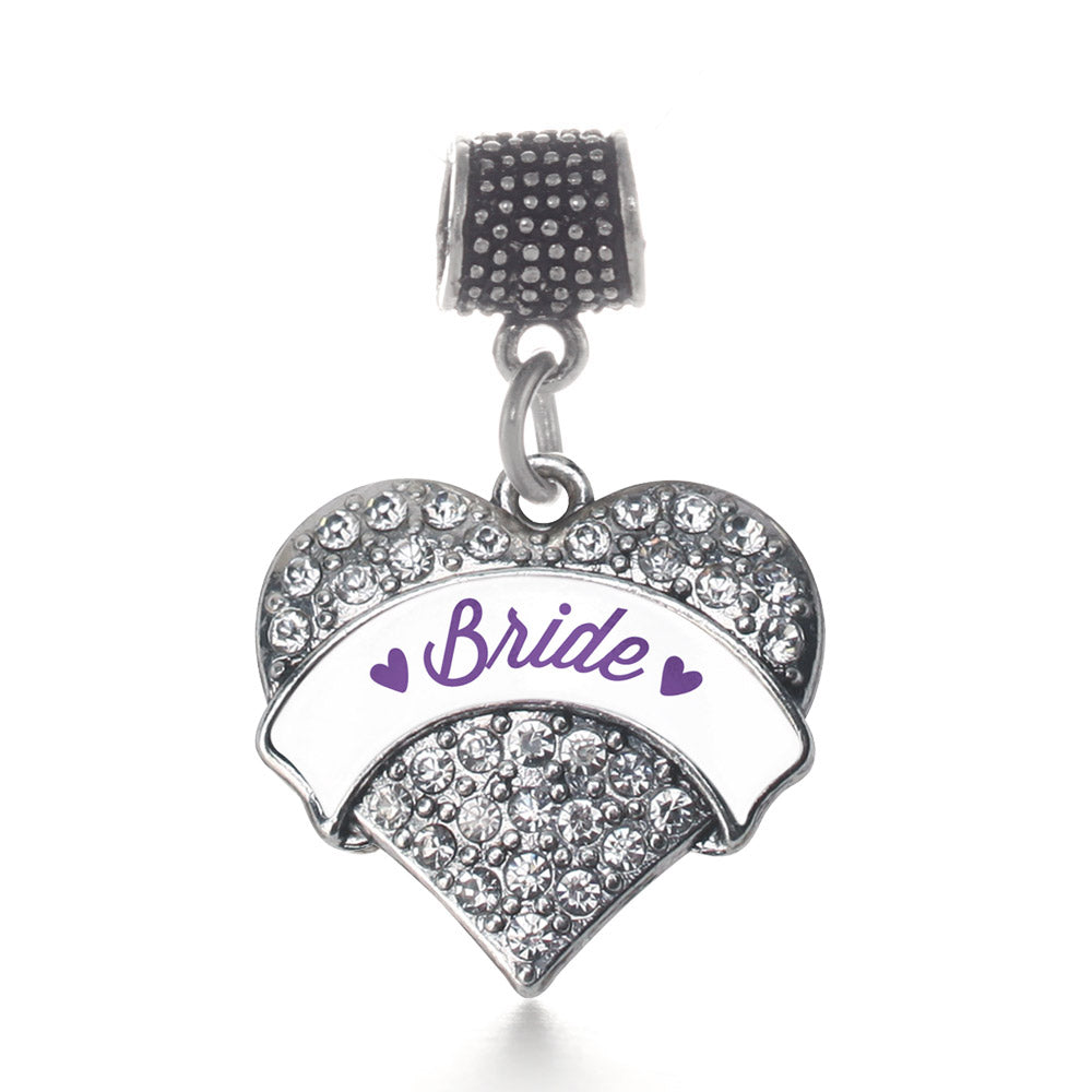 Silver Purple Bride Pave Heart Memory Charm