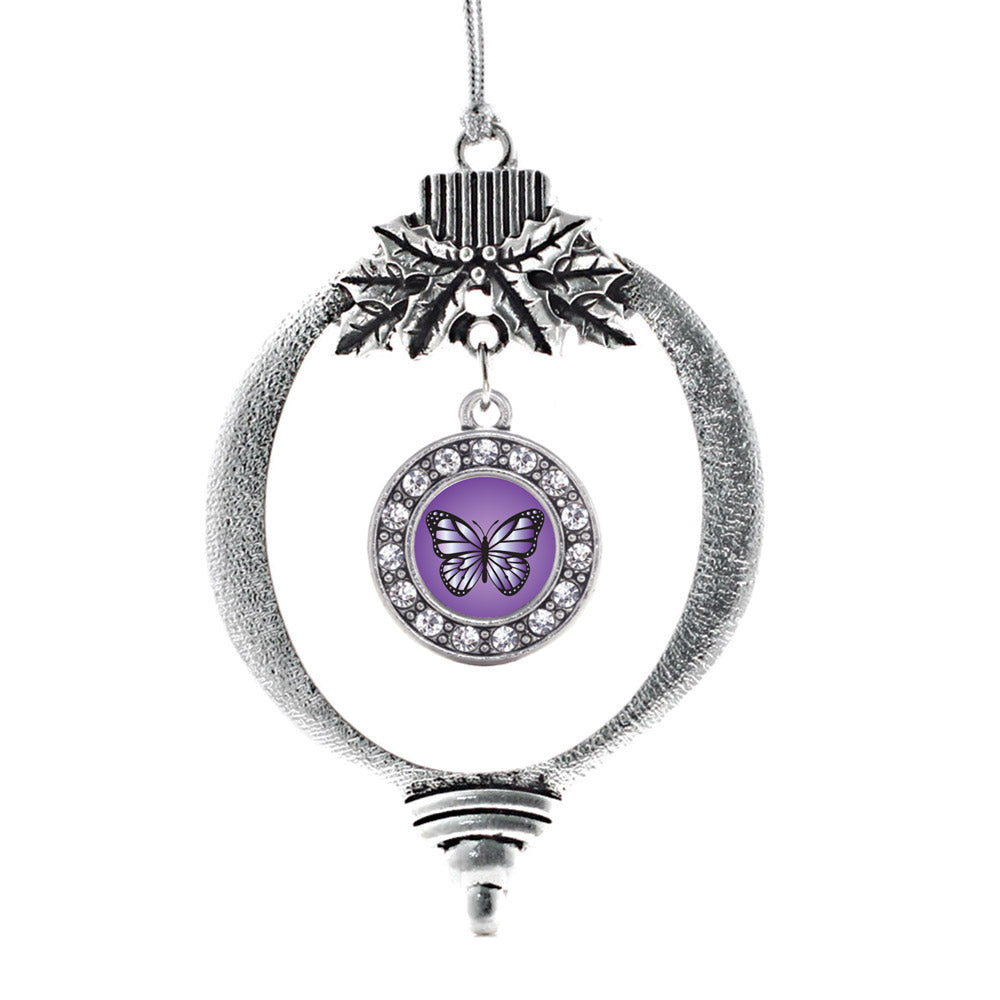 Our sparkling holiday ornament, equipped with a stylish silver rope and the Purple Butterfly circle charm, is crafted from white metal with a silver plated finish and accented with cubic zirconia stones.