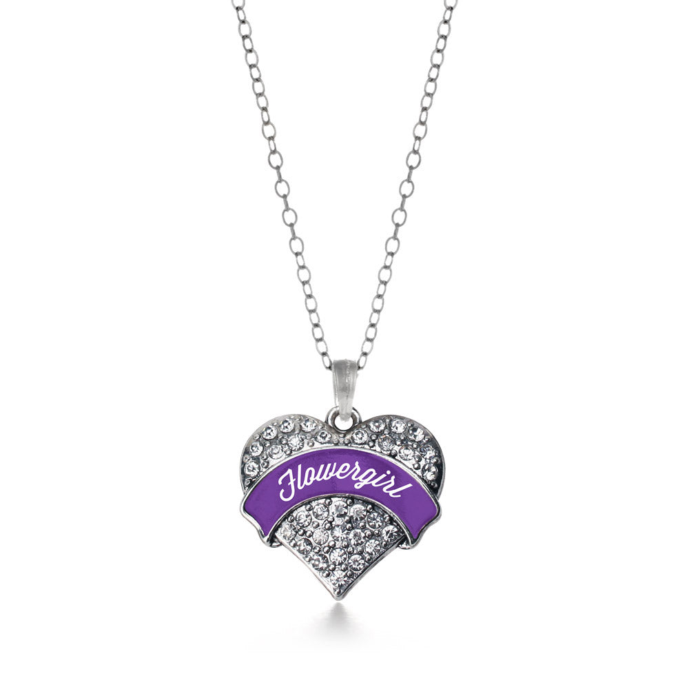 Our sparkling classic necklace, equipped with a stylish lobster claw clasp and the Purple Flower Girl pave heart charm, is crafted from white metal with a silver plated finish and accented with cubic zirconia stones.