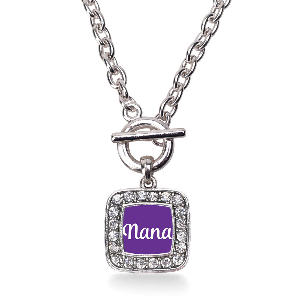 Our sparkling toggle necklace, equipped with a stylish toggle clasp and the Purple Nana square charm, is crafted from white metal with a silver plated finish and accented with cubic zirconia stones.