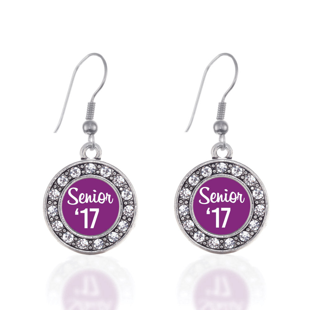 Our sparkling dangle earrings, equipped with a stylish french hook backing and the Purple Senior '17 circle charm, is crafted from white metal with a silver plated finish and accented with cubic zirconia stones.