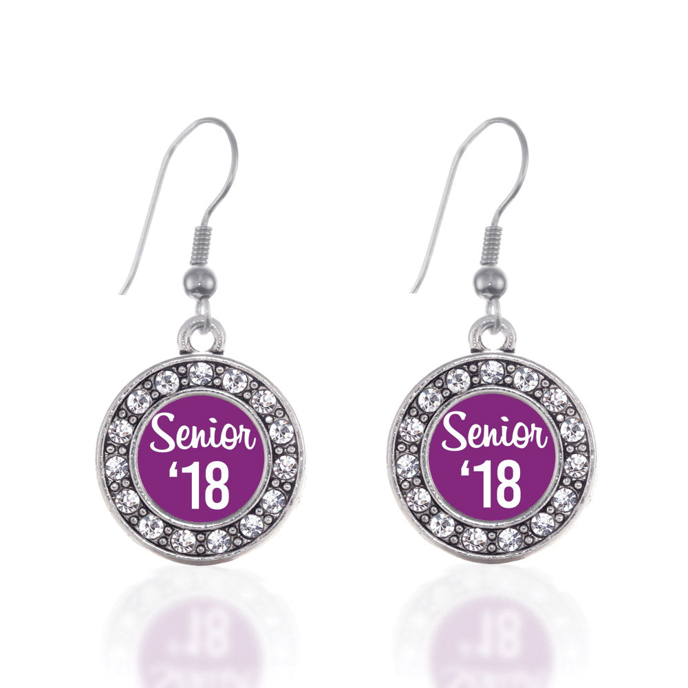 Silver Purple Senior '18 Circle Charm Dangle Earrings