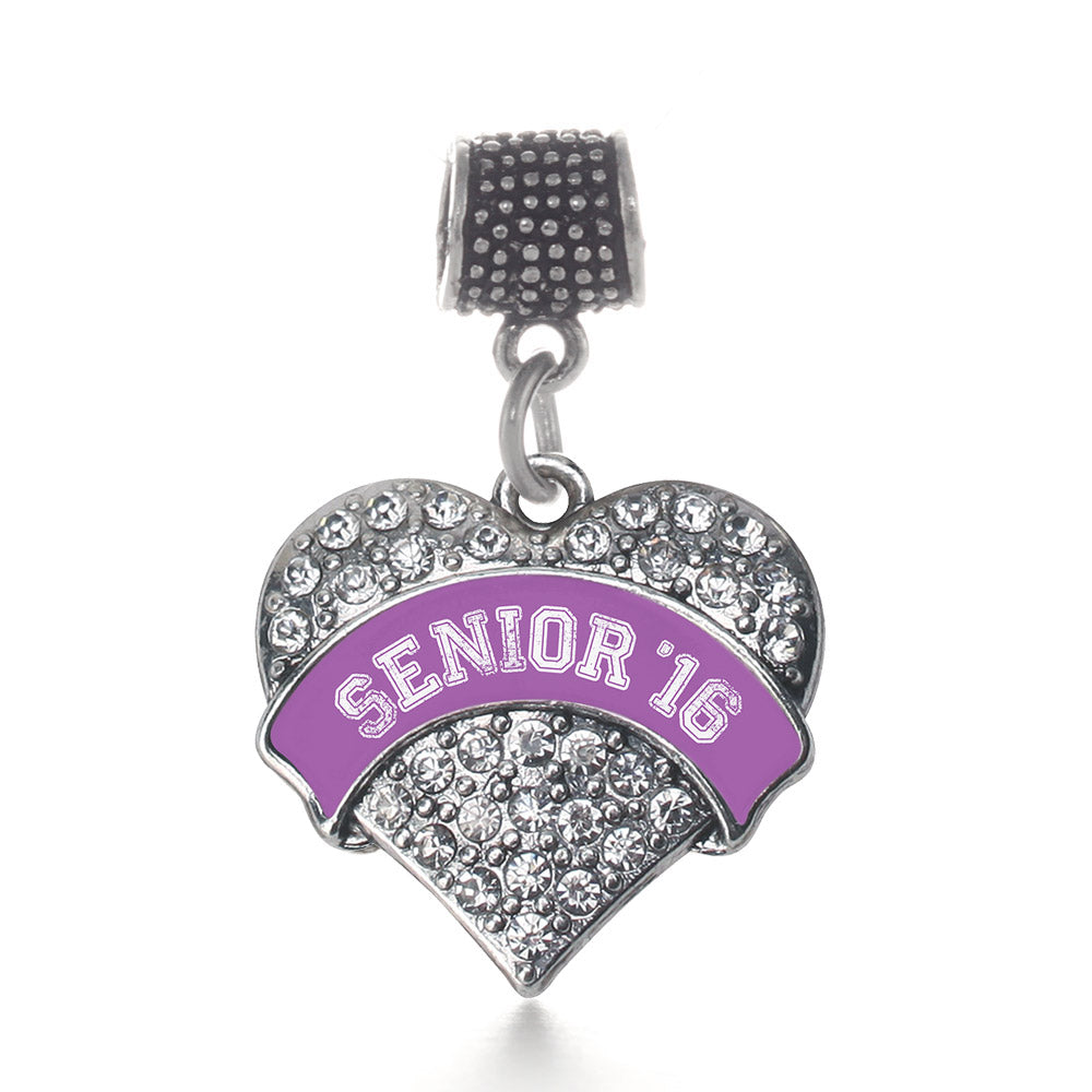 Our sparkling memory charm, equipped with a stylish charm attachment ring and the Purple Senior 2016 pave heart charm, is crafted from white metal with a silver plated finish and accented with cubic zirconia stones.