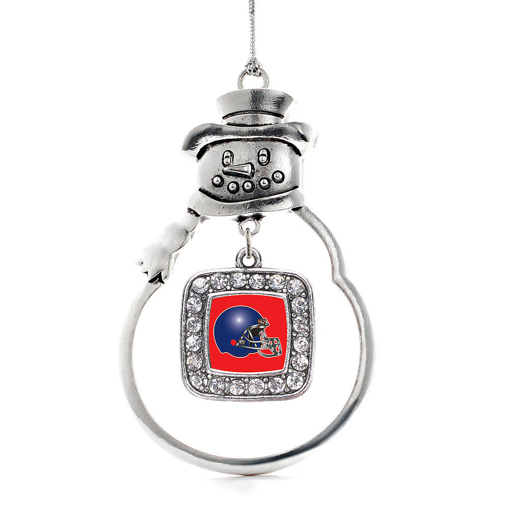 Silver Red and Blue Team Helmet Square Charm Snowman Ornament