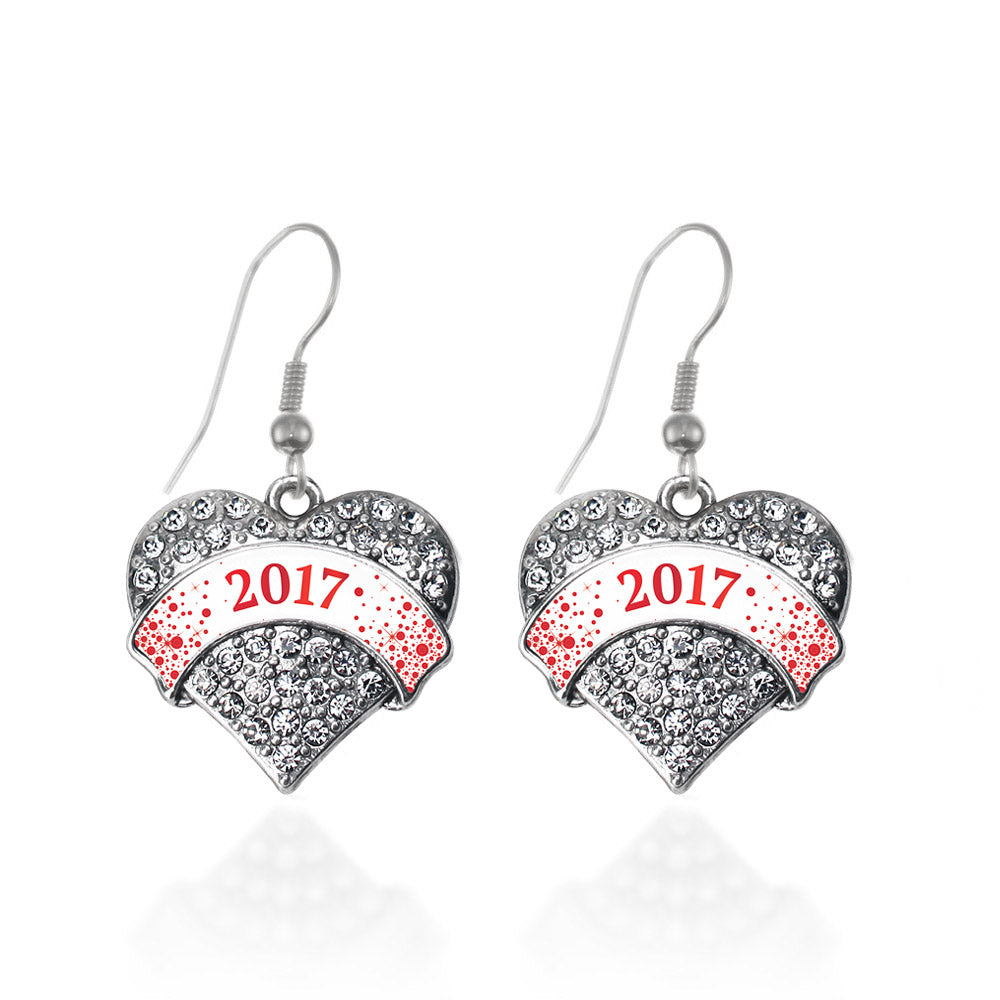 Our sparkling dangle earrings, equipped with a stylish french hook backing and the Red and White Christmas 2017 pave heart charm, is crafted from white metal with a silver plated finish and accented with cubic zirconia stones.