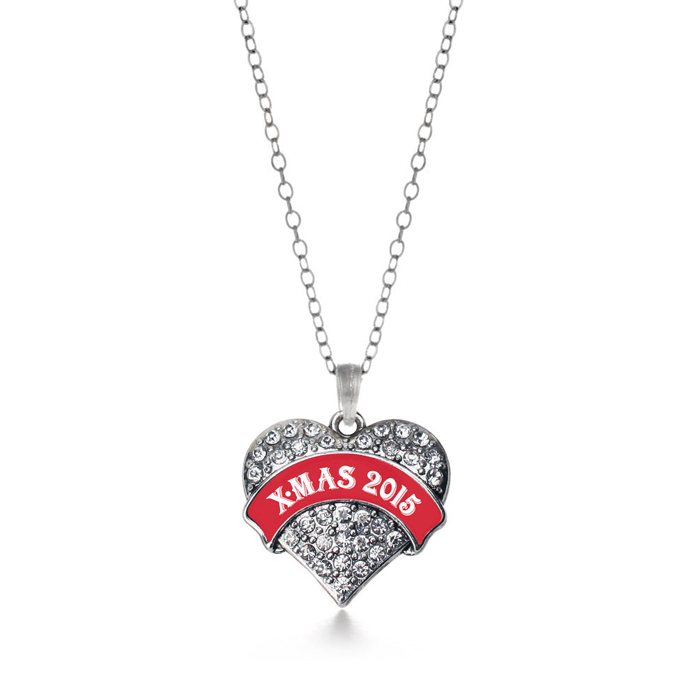 Silver Red Banner X-mas 2016 Pave Heart Charm Classic Necklace