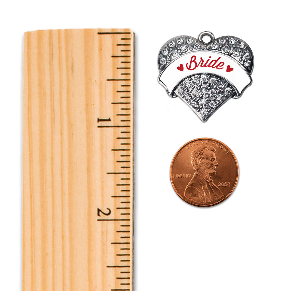 Silver Red Bride Pave Heart Charm Toggle Bracelet