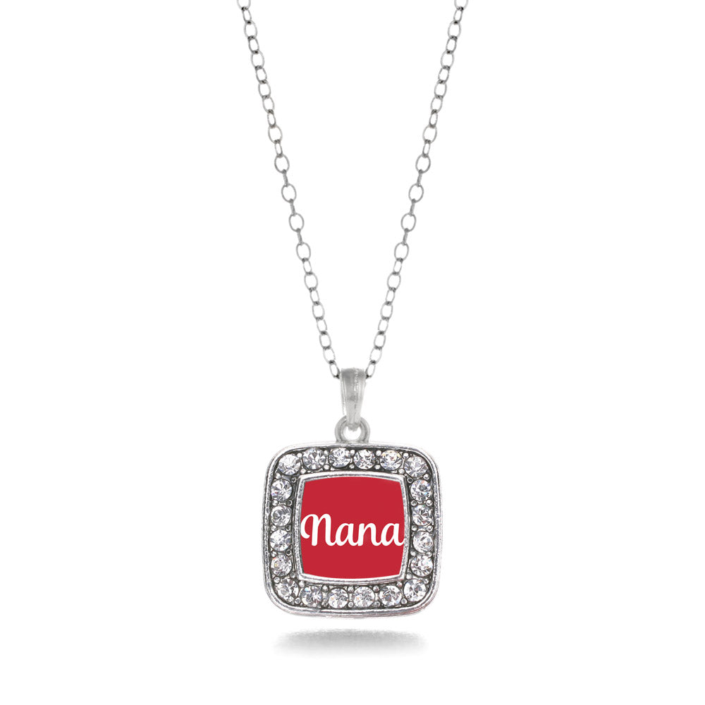 Silver Red Nana Square Charm Classic Necklace