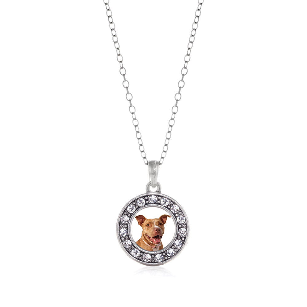 Our sparkling classic necklace, equipped with a stylish lobster claw clasp and the Red Pit Bull circle charm, is crafted from white metal with a silver plated finish and accented with cubic zirconia stones.