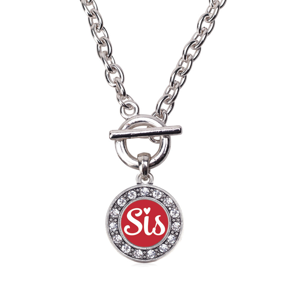 Silver Red Sis Circle Charm Toggle Necklace