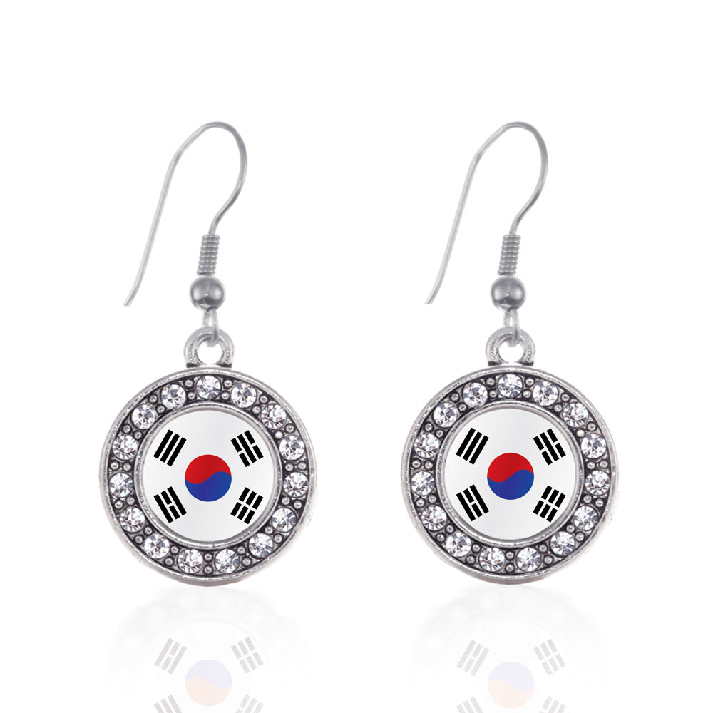 Silver Republic of Korea Flag Circle Charm Dangle Earrings