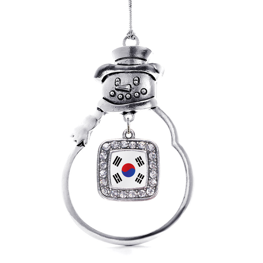 Silver Republic of Korea Flag Square Charm Snowman Ornament